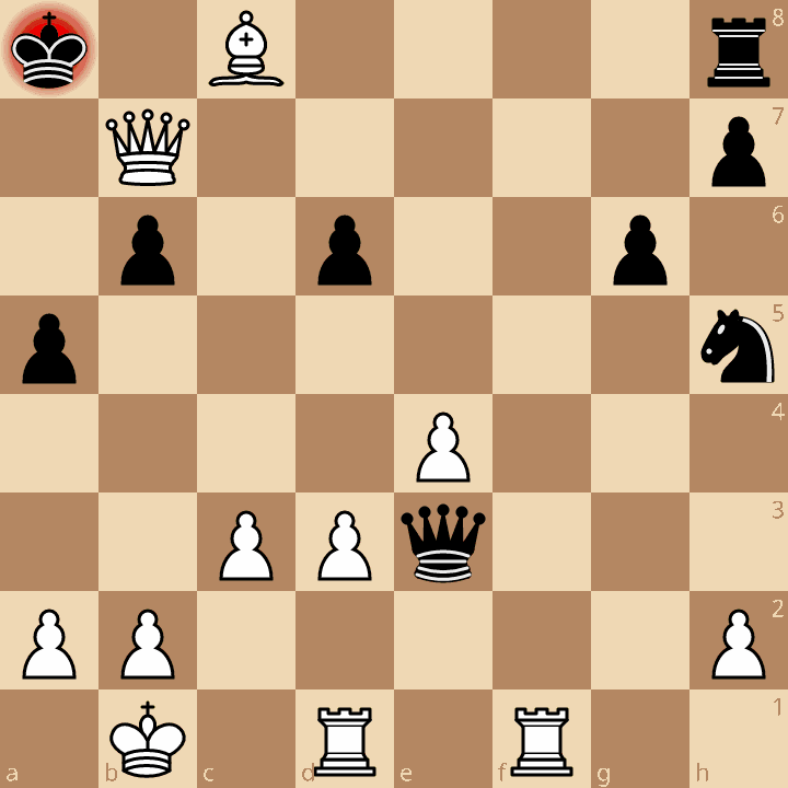 1. e4 e5 2. Nc3 Nf6 3. f4 { C29 Vienna Game: Vienna Gambit } d6?! { (-0.21 → 0.37) Inaccuracy. d5 was best. } (3... d5 4. fxe5 Nxe4 5. Nf3 Bc5 6. d4 Bb4 7. Bd2 c5 8. Bd3) 4. Nf3 Bg4 5. Bc4 Nc6 6. d3 Nd4 7. Be3 Bxf3 8. gxf3 Nxf3+?? { (-0.44 → 5.28) Blunder. Nh5 was best. } (8... Nh5) 9. Qxf3 Qd7 10. O-O-O O-O-O 11. Kb1 Kb8 12. Rhg1 g6 13. fxe5 Ne8 14. Bg5 Be7 15. Bxe7 Qxe7 16. Qxf7 Qxe5 17. Qf2 Ng7 18. Nb5 b6 19. Nd4 Qc5 20. Bd5 Kc8 21. Qf6 Nh5 22. Qe6+ Rd7 23. Bc6 Qxd4 24. Qxd7+ Kb8 25. Rgf1 a5? { (8.03 → Mate in 4) Checkmate is now unavoidable. Nf6 was best. } (25... Nf6 26. Qg7 Rc8 27. Qxf6 Qc5 28. Qc3 Qxc3 29. bxc3 a6 30. a4 Ka7) 26. c3? { (Mate in 4 → 8.29) Lost forced checkmate sequence. Rf7 was best. } (26. Rf7 Qxb2+ 27. Kxb2 Rc8 28. Qxc8+ Kxc8 29. Rf8#) 26... Qe3? { (8.29 → Mate in 4) Checkmate is now unavoidable. Qe5 was best. } (26... Qe5 27. Rf7 d5 28. d4 Qd6 29. Qxd6 cxd6 30. exd5 g5 31. Rb7+ Kc8 32. Ra7) 27. Bd5? { (Mate in 4 → 7.40) Lost forced checkmate sequence. Rf7 was best. } (27. Rf7 Qxd3+ 28. Rxd3 Rc8 29. Qxc8+ Kxc8 30. Rf8#) 27... Ka7? { (7.40 → Mate in 4) Checkmate is now unavoidable. b5 was best. } (27... b5 28. Qxb5+ Qb6 29. Qxb6+ cxb6 30. Rf7 g5 31. Rb7+ Kc8 32. Ra7 Rd8 33. a3) 28. Qxc7+ Ka6 29. Bb7+ Ka7 30. Bc8+ Ka8 31. Qb7# { White wins by checkmate. } 1-0
