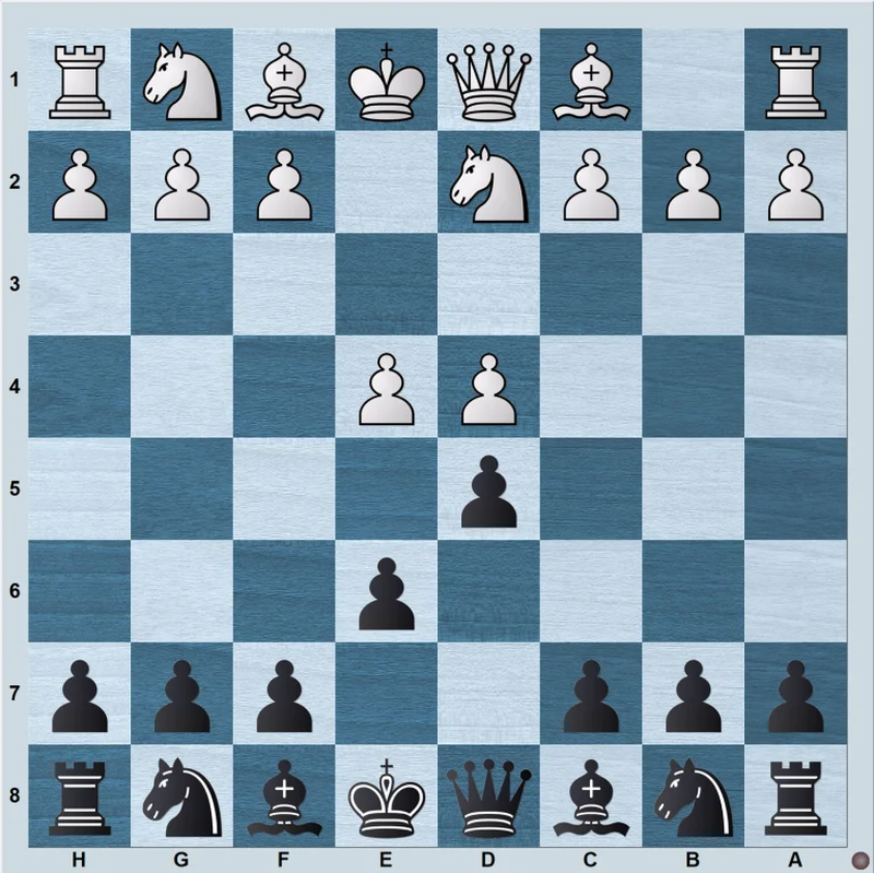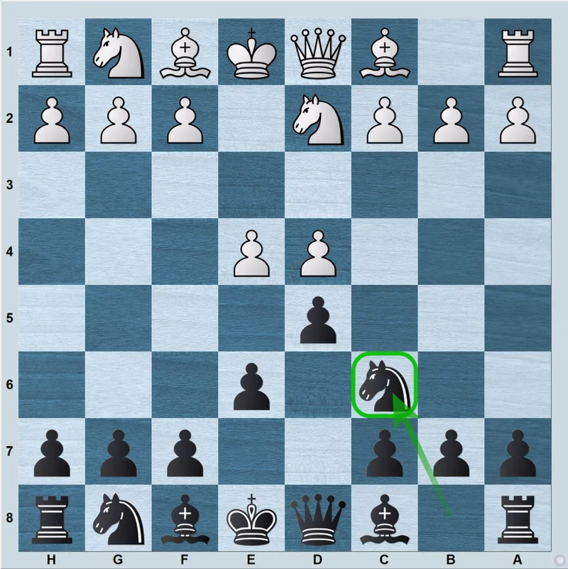 I quickly recalled that in my last ten games, I played here 3...Nc6, without exception. And this is what he’s prepared for, and this is a position he wanted to play so much that he deviated from his standard 1.d4 and played 1.e4