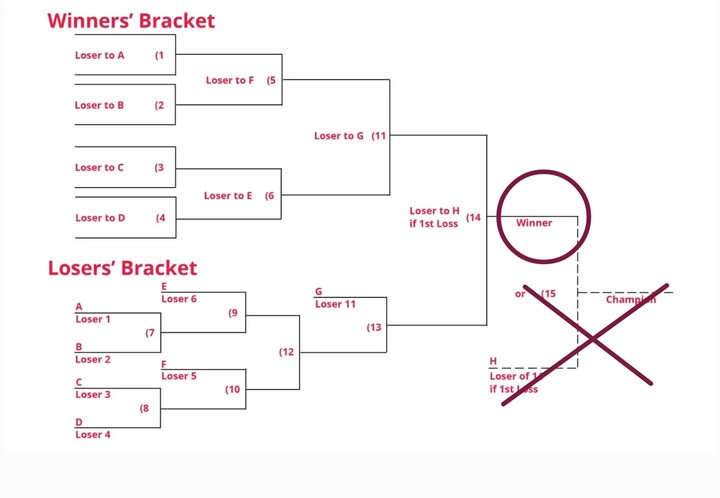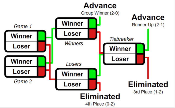How to manage groups of 4? The worst thing to do would be a Round Robin! Again, that would lead to potentially meaningless games and the whims of someone already out of competition. Esports have a solution with the so-called “GSL Brackets”: