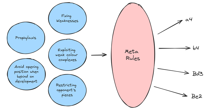 The idea here is that one can seemingly draw from a myriad of principles, rules, and guidelines to justify or critique any given move or idea. There are endless principles and rules that one can reference to justify any idea. However, this abundance of options raises a crucial question: if multiple principles are applicable in a given position, how do we determine which ones are more important?