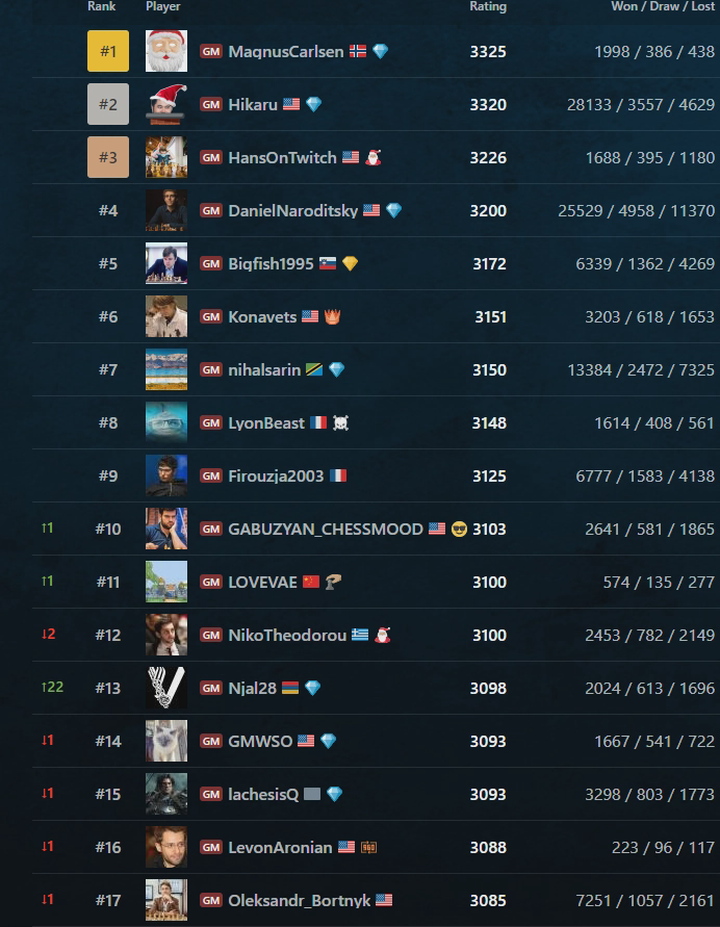 2023 started very badly – I got divorced, had health issues, and some other significant troubles I can't even talk about yet. Life was going downhill, and despite my efforts to stay positive and tackle the problems, my challenges had a significant negative impact on me. It also greatly affected my online chess rating. In 2021, I reached my peak at 3,064, but in 2023, my rating dropped below 2,800.