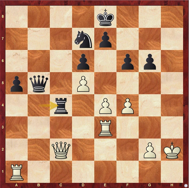 Black has just played 39. ... Rxc4, threatening the white queen. Where would you move it?