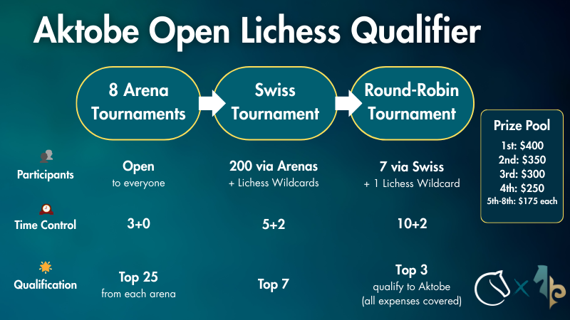Three players can qualify through a series of tournaments held only on Lichess. They will have their flights, full board, and accommodation in Aktobe covered for them -- as well as a share of a $2,000 prize fund for the online qualifier.