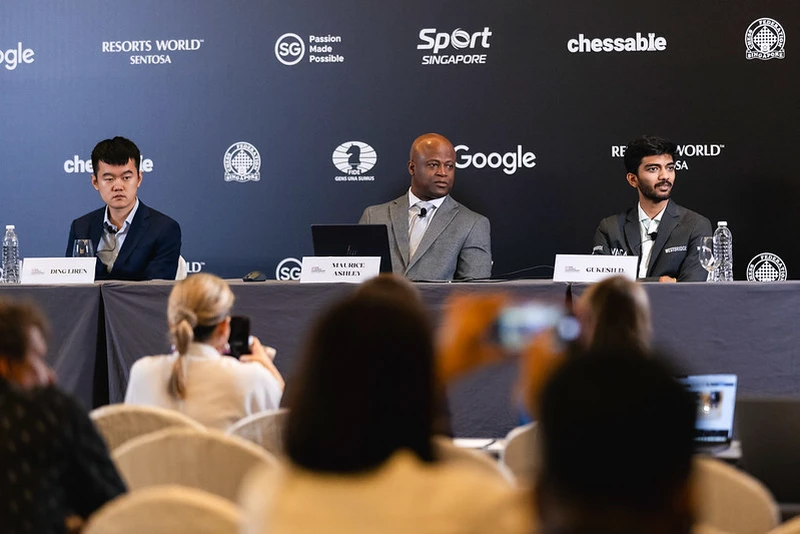 Olivier Lim moves Gukesh's e-pawn.