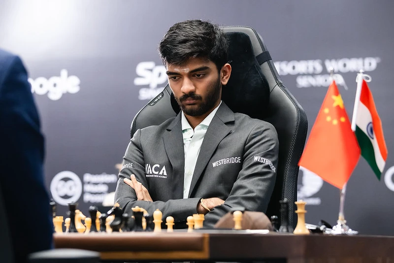 An early exchange in the Queen's Gambit Declined saw GM Ding Liren going for a critical line with 10...Bc2, a move that showed that Ding was ready to fight. GM Gukesh D was doing well until he played 15. g5, after which Ding was slightly better. Ding ended up trapping his own bishop with 18...Rh5, though, and Gukesh converted brilliantly after that as Ding's time trouble did not allow him to put up the stiffest resistance.