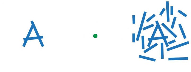 In the image below, keep your eyes on that green dot in the center and consider the letters off to the side. My guess is that the letter to the left looks a little blurry, but is nonetheless easily recognizable as a "A." But what about the letter in all that clutter on the right? That letter is the same distance from your fovea as the one on the left, so if the left-side letter was legible, this one should be as well. I'm betting you might find this more difficult to see, though - it's probably difficult to be sure exactly which lines go together to make a letter at all and which lines are just distracting elements. If you indeed found the central letter on the right more difficult to recognize than the isolated letter on the left, you were just a victim of the phenomenon known as visual crowding. Briefly, crowding occurs when an item is made harder to recognize due to the presence of neighboring items that are too close. How close is too close? It turns out that there is a systematic relationship named Bouma's Law that governs crowding - If you have an item that's a certain distance away from the center of your visual field (let's call that distance d), then stuff that's with d/2 units of the item will lead to crowding. That means things that are close to where you're looking are only made hard to recognize if things are right up against them, but things that are far away from where you're looking can crowded by items that are a decent distance away from them.