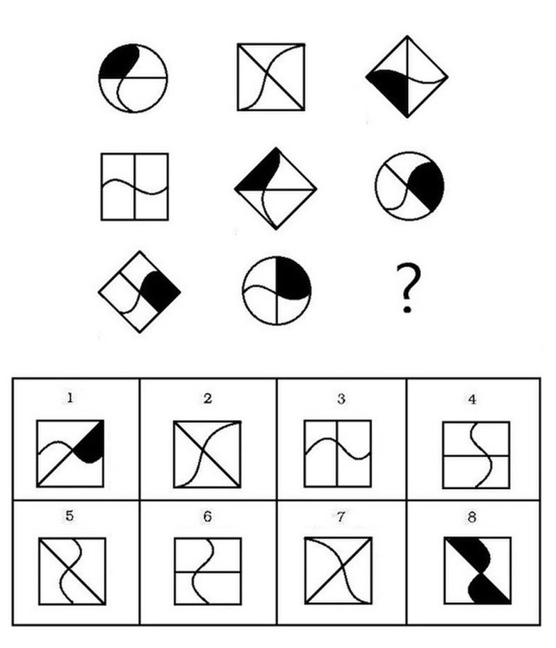 If you've ever taken an IQ test (an online one or a formal assessment), you have probably seen these before. Each item in this test presents the participant with an array of shapes, with variation across the rows and columns of the array defined by some rule by which the patterns are transformed. That rule may have to do with shapes, numerosity, patterns made by light and dark regions in the form, or other visual properties of the items. This assessment is frequently used as a proxy of fluid intelligence.
