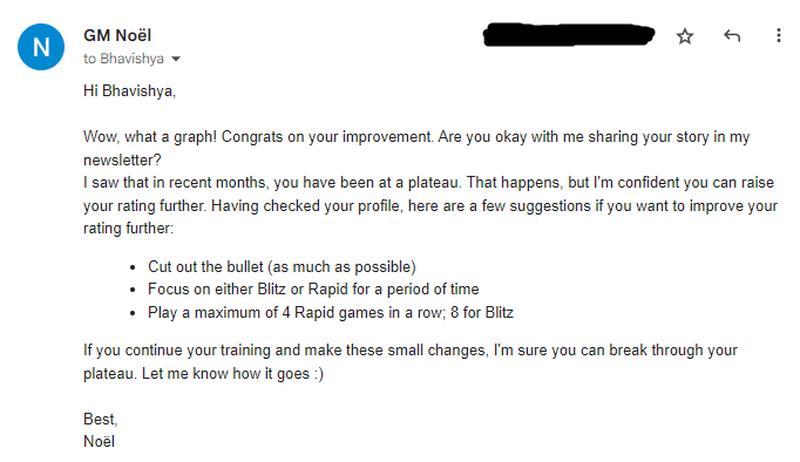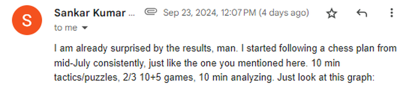 The main takeaway for today is that chess improvement should be kept simple. Those more familiar with my work will realize that the plans mentioned by both Bhavishya and Sankar can be improved. However, the key is that the simplicity and consistency helped them get the ball rolling and see big improvements in their game. Slowly, they can now adjust and improve even further.