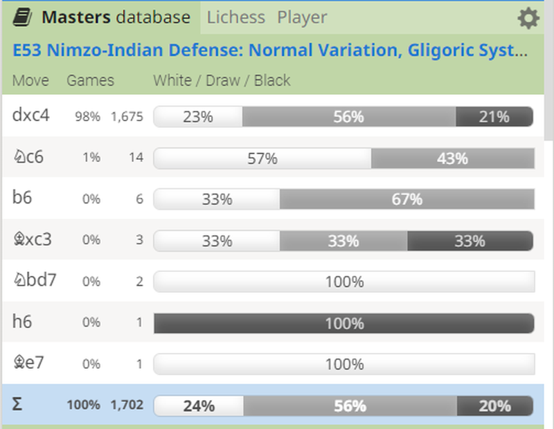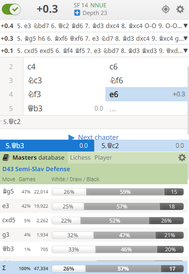 Information on openings has never been more freely available. Openings databases have revolutionized how people learn openings. The information they offer is powerful, but unexplained, and requires learners to interpret the data themselves. Consider this example from the Semi-Slav Defense: