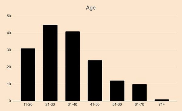 The survey got 165 replies and was beside the newsletter shared on Twitter and on Reddit. The age of the participants looks like this.