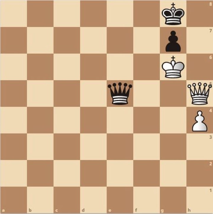 “I can’t see a win for Black in the pawn ending (and I don’t see why Black is in any way better) so my solution is to force an immediate draw 1...Qe8+ 2. Kg5 Qe5+ 3. Kg4 Qe2+ 4. Kg5 Qe5+ repeating”
