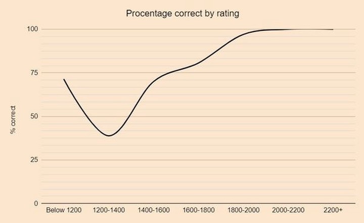 In the small below 1200 group 5 out of 7 got it correct. I don’t think we should make too much of the high performance of this rating group due to the small number.