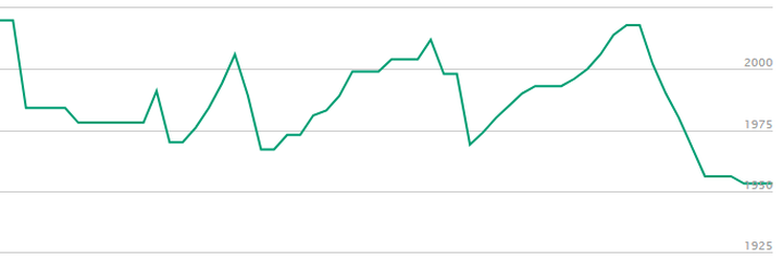 My rapid rating from April to June 2023. Everytime I tried to progress above 2000, I would sharply fall off a cliff