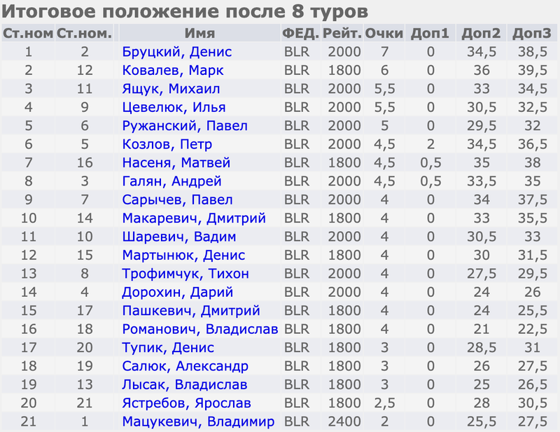 ТОП-3 у мужчин (1 место - 500 рублей, 2 - 350, 3 - 250). Денис Бруцкий - победитель турнира. Сегодня, в день написания статьи, 15 сентября, он отмечает своё 17-летие. Мои поздравления