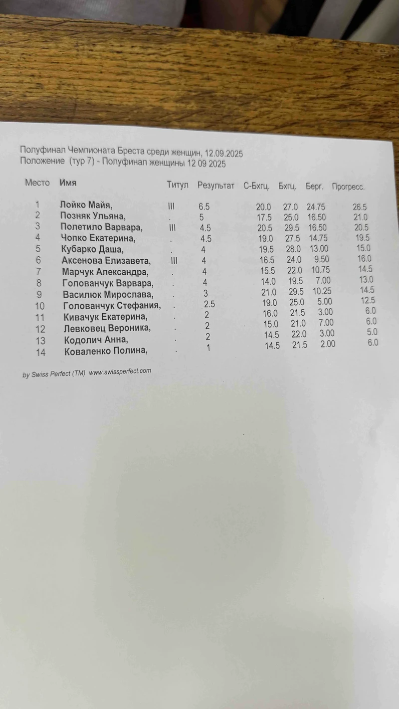 Полуфинал и финал чемпионата Бреста среди женщин (13.09.2025 - 15.09.2025)