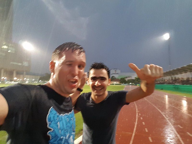 The rain didn’t stop the two coaches from finishing their planned 3 kilometers run