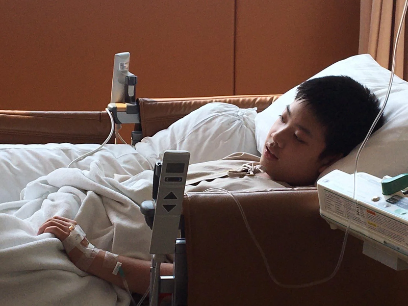 “Yep... I got a terrible fever. Just had injections. But I asked my Dad to bring my laptop, so I don’t miss our lesson.”