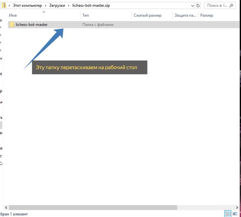 Теперь самое важное! Нужно нажать на зип - архив личесс - бот - мастер и следующую папку перенести на рабочий стол (см. фото)