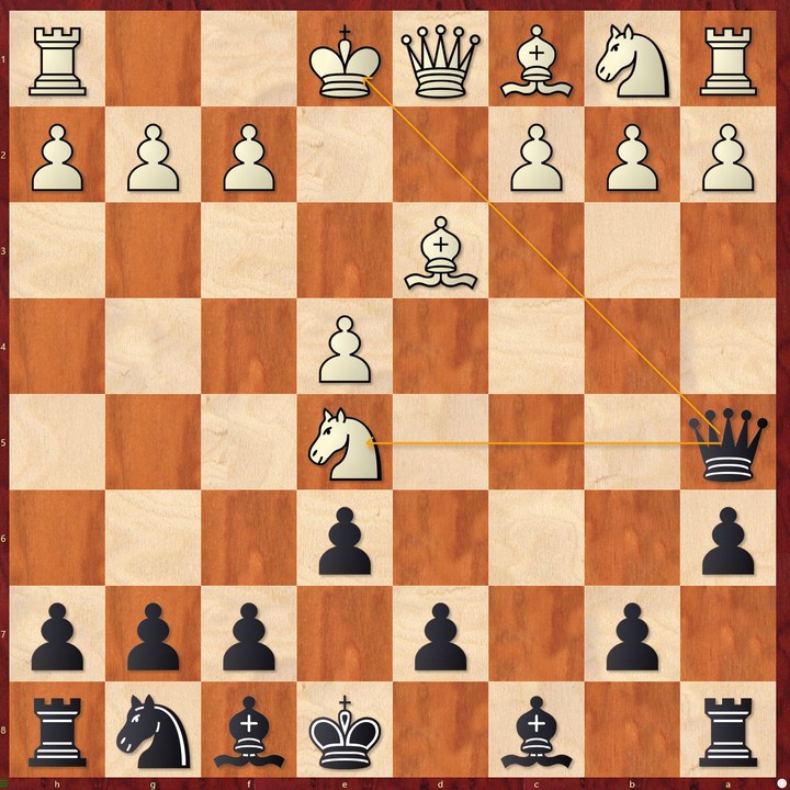 White should play 7.Ne5! and after 7...Qa5+ 8.Nd2 Qxe5 9.O-O (diagram) they have an overwhelming advantage in development.