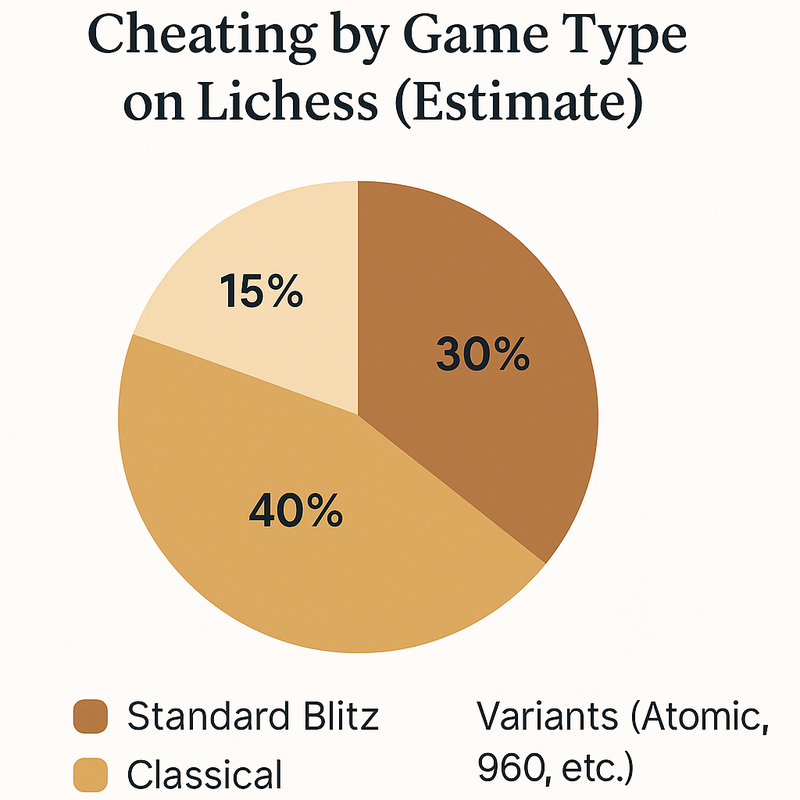 Online platforms like Chess.com and Lichess have reported varying rates of cheating. Chess.com noted that approximately 1.1% of participants had their accounts closed for cheating from March 2023 to March 2024. Lichess, on the other hand, flagged 61,000 accounts for cheating in 2022 and 72,000 in 2023. That means, amount of cheaters on Lichess gets higher and higher.