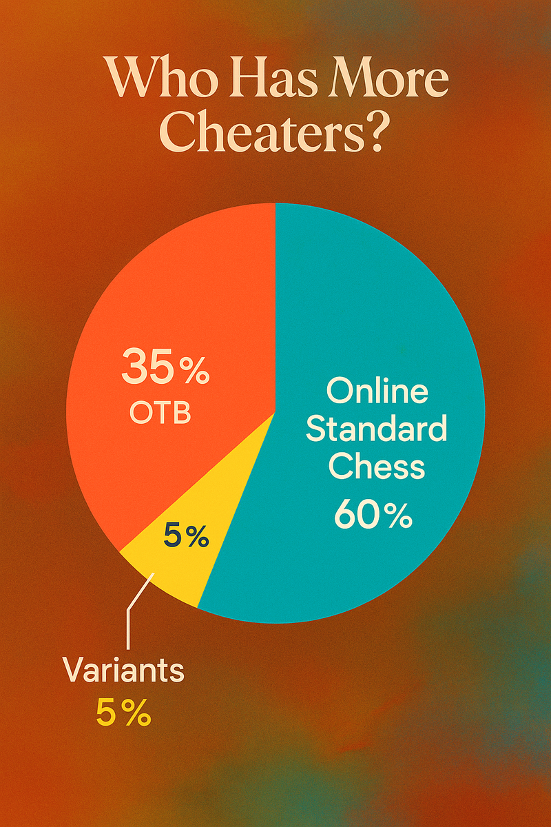 A deep dive to cheating problem everywhere. Who have them the most? Standard, OTB, or Variants?Cheating in Standard Chess vs. Variants vs. Over-the-Board (OTB)