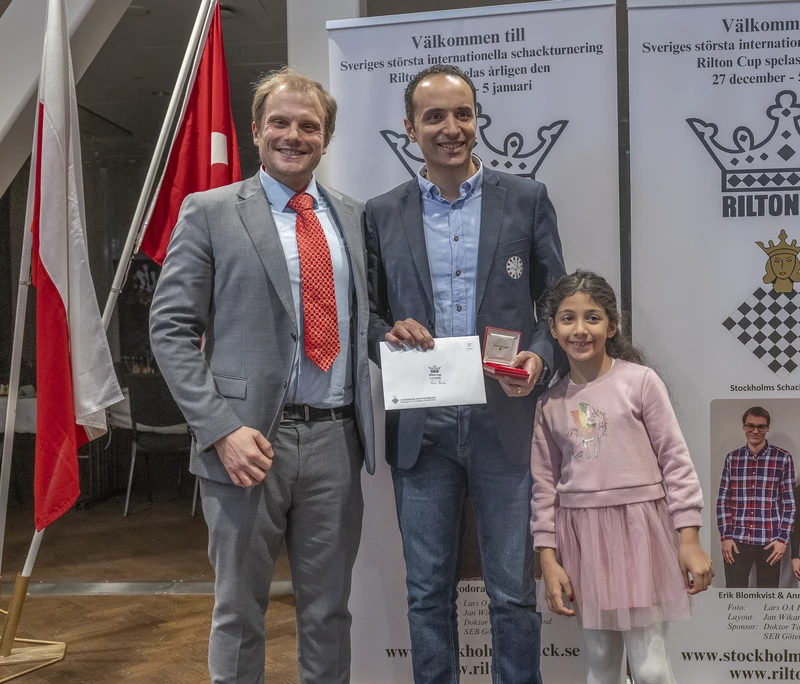 Birger is also involved in organizing various tournaments, such as the Rilton Cup, which is now an established event in the chess calendar and traditionally takes place between Christmas and shortly after New Year's Day. Picture from left to right: Birger Wenzel, Rilton Cup winner 2024 GM Dr. Bassem Amin , and his daughter Lara. (Picture: Lars OA)