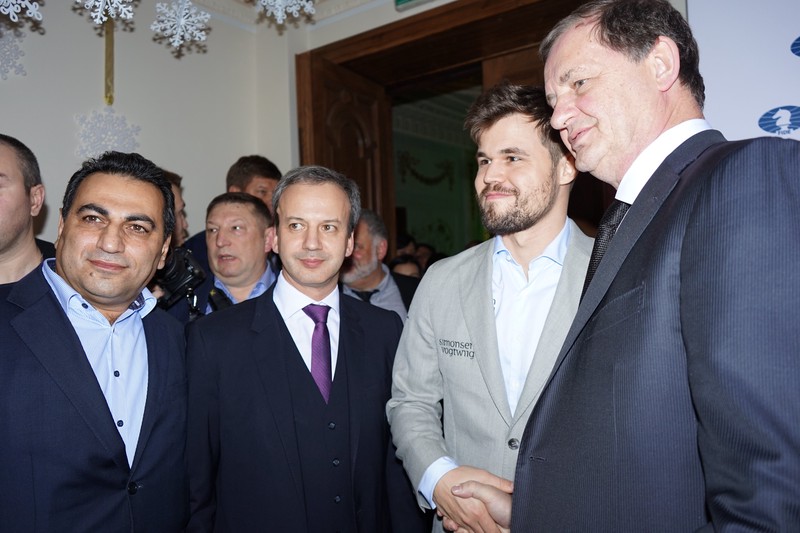 Dvorkovich, second from left, at the King Salman rapid and blitz, a FIDE event named after the Saudi head of state. (Photo: Amruta Mokal, FIDE)