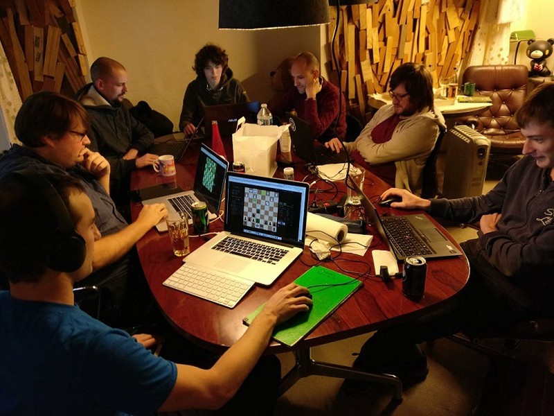 From left to right: ProgramFOX, thibault, happy0, lakinwecker (background), veloce (nose)