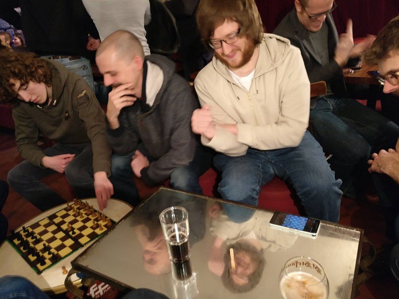 On Saturday night we had the public Lichess user meetup as announced in advance on the Lichess forums and on social media. We had reserved several tables in a bar and were hoping to gather a small number of Lichess users, so that we would have an opportunity to meet them, and that they would have an excuse to meet each other. We didn't get as many users showing up as we had hoped, but we had one nice gentleman stopping by to discuss Lichess and chess in general.