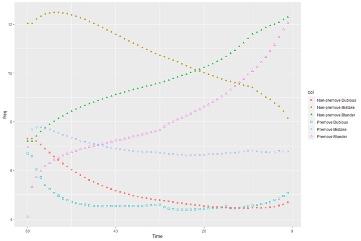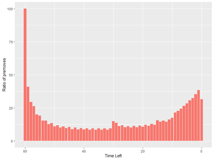 The more interesting is the ratio of pre-moves made by each time (This graph does not add up to 1).