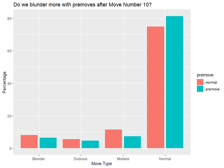 Now you might suspect is this because of the majority of pre-moves being in the opening. So I filtered this for Move Numbers after 10. I am sure some of you have deeper opening preparations but I am just choosing a number.