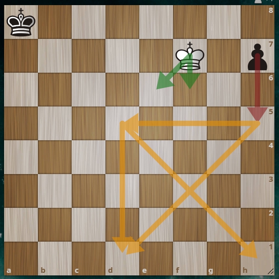 but it is about watching how to apply the rule of square... to put the pawn outside the square in the static picture mnemonics also fixes that case, as one has to think about immediate pawn move and place the square drawing there.. It was not the optical illusion I had because I still don't look much at the algebraic, I would rather look at the interactions, and rely of where the kings are in frequency and that one, was easily the pawn near promotion.. how training can induce assumptions.. (we start by queening problem, and thing they might be the only criticality).. enough babbling... or post-mortem. (also I wish there was a coordinate system where the (0,0) was the very center of the 8x8 in its ambient R2 space. at least the numbers could be signed we would know territory at a glance, (I guess 4.5 might do as well...) 4 on own side 5 on the other. but then flip that and you double the learning task to reach at a glance, at least descriptive had less hurdles for spatial intuition, that catches symmetries and they breaking at a glance) (from respective rim or from 0,0 at center they both carry the symmetry at a glance of the notation).