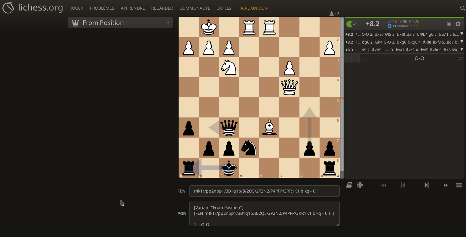 [FEN "r4k1r/pp2npp1/3B1q1p/8/2b5/2P2N2/P3QPPP/3RR1K1 w Qkq - 0 1"]