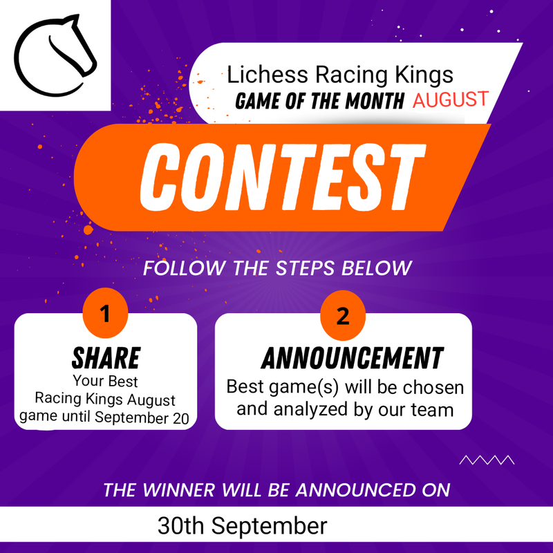 The forum thread where you can submit your September games is already open: https://lichess.org/forum/team-lichess-racing-kings/lichess-racing-kings-game-of-the-month-september-2