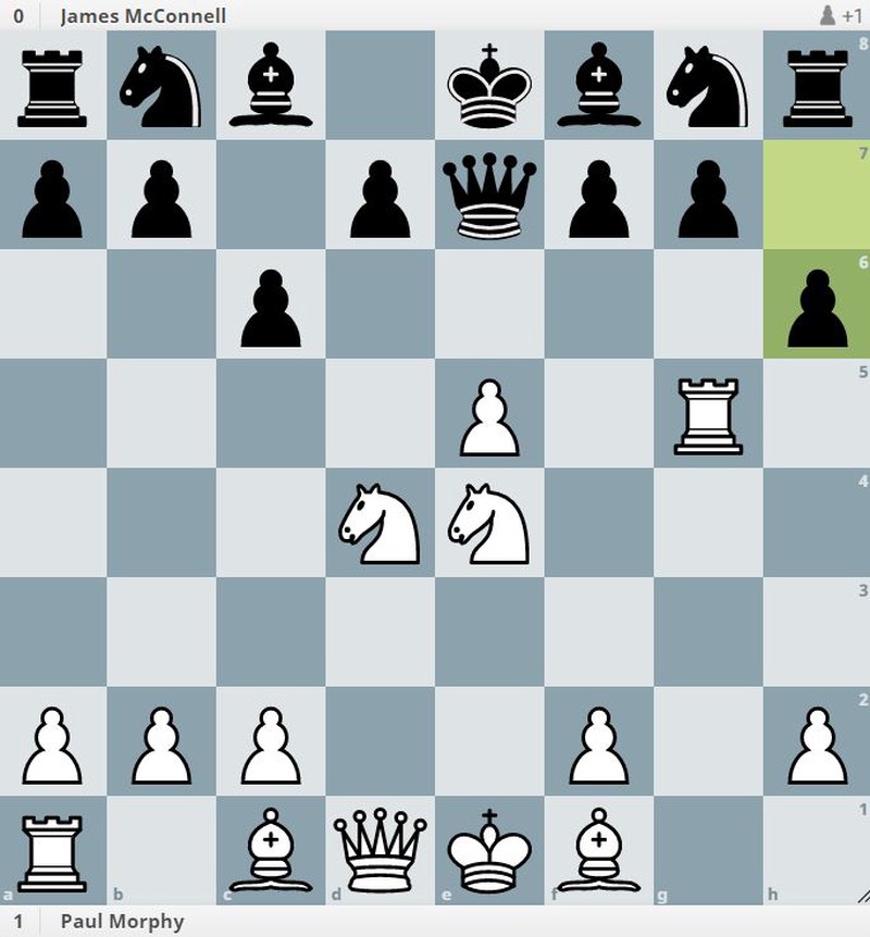 Legendary Player Paul Morphy understood the importance of development. In the following position Morphy has two knights and a rook in the middle of the board and his bishops are already unblocked by pawns and ready to go, meanwhile the black pieces are mostly still where they started the game. This is called a "lead" in development. Note that Morphy has one less pawn than his opponent but nevertheless has a crushing advantage, he checkmate his opponent 11 moves later
