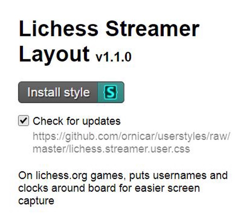 Now go to the Lichess streamer user style and click "Install style."
